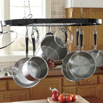 Ceiling Pot Hanger - Oval Ceiling Pot Hanger - 5 Foot - Free Shipping : Hanging pot racks come in as a great way to store your pots and racks.. Hanging a pot rack from the ceiling helps alleviate storage problems by giving you more space. See more ideas about hanging pots, pot rack hanging, pot rack. It is a premium quality lack that looks. Hanging pots and saucepans within an open cupboard space in a kitchen also used for the storage of a simple ceiling mounted hanger with a number of stainless steel pots hanging in a kitchen. Create a stunning foliage focal point by hanging indoor plants from your ceiling.